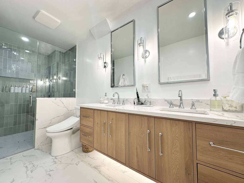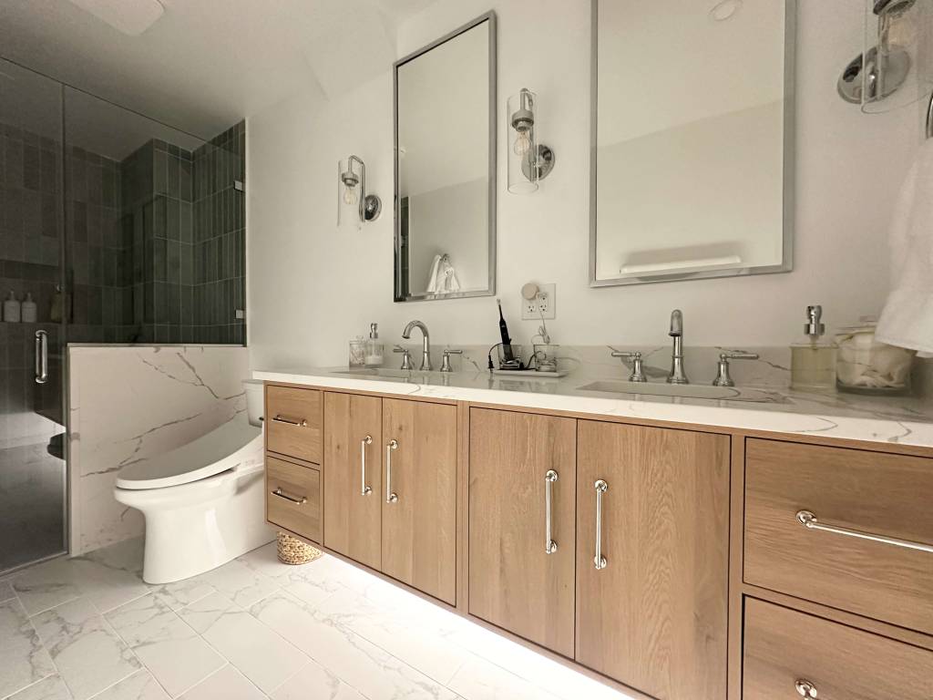 - Fitting high-end finishes, including a new floating vanity with under-cabinet lighting and final hardware like mirrors and towel bars.